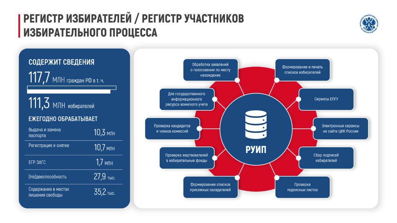 «Главная цель новелл – обеспечить избирателю гарантию реализации избирательных прав. При ежедневном получении сведений из МВД России данные о смене паспорта или регистрации поступают в систему в течение суток, что позволяет нам получать достоверные и актуальные сведения из первоисточника. Таким образом, списки избирателей на участках будут максимально приближены к реальности. Мы предполагаем, что это практически исключит ситуации, когда избиратель не находит себя в списке на участке по месту жительства, а также позитивно скажется на процессах сопоставления данных, содержащихся в Регистре, с учетной записью на портале Госуслуг. Это, как следствие, обеспечит удобное использование цифровых сервисов и беспрепятственный доступ к дистанционному электронному голосованию».